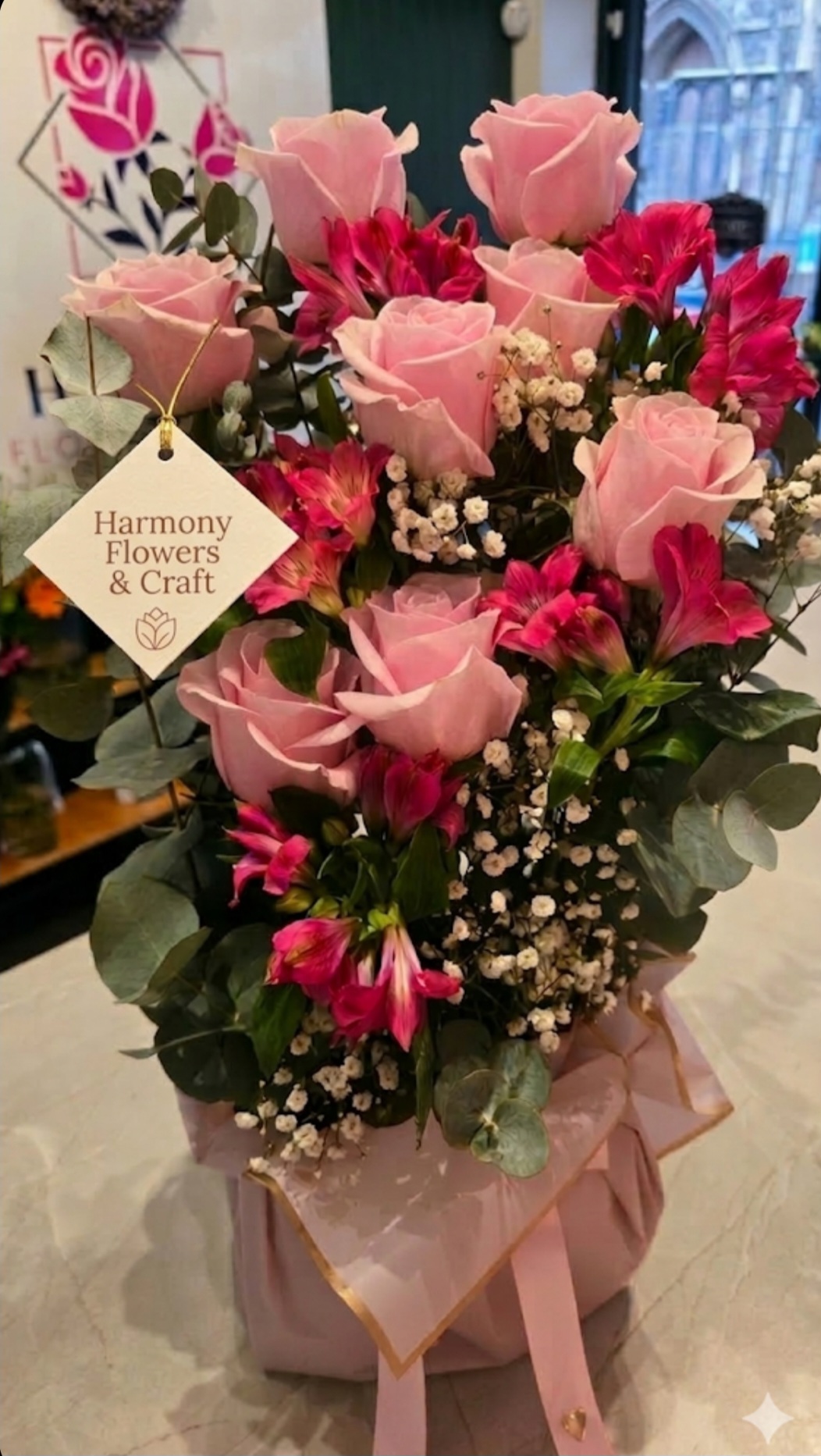 ​A stunning, feminine arrangement featuring premium Blush Pink Roses and vibrant Pink Alstroemerias.