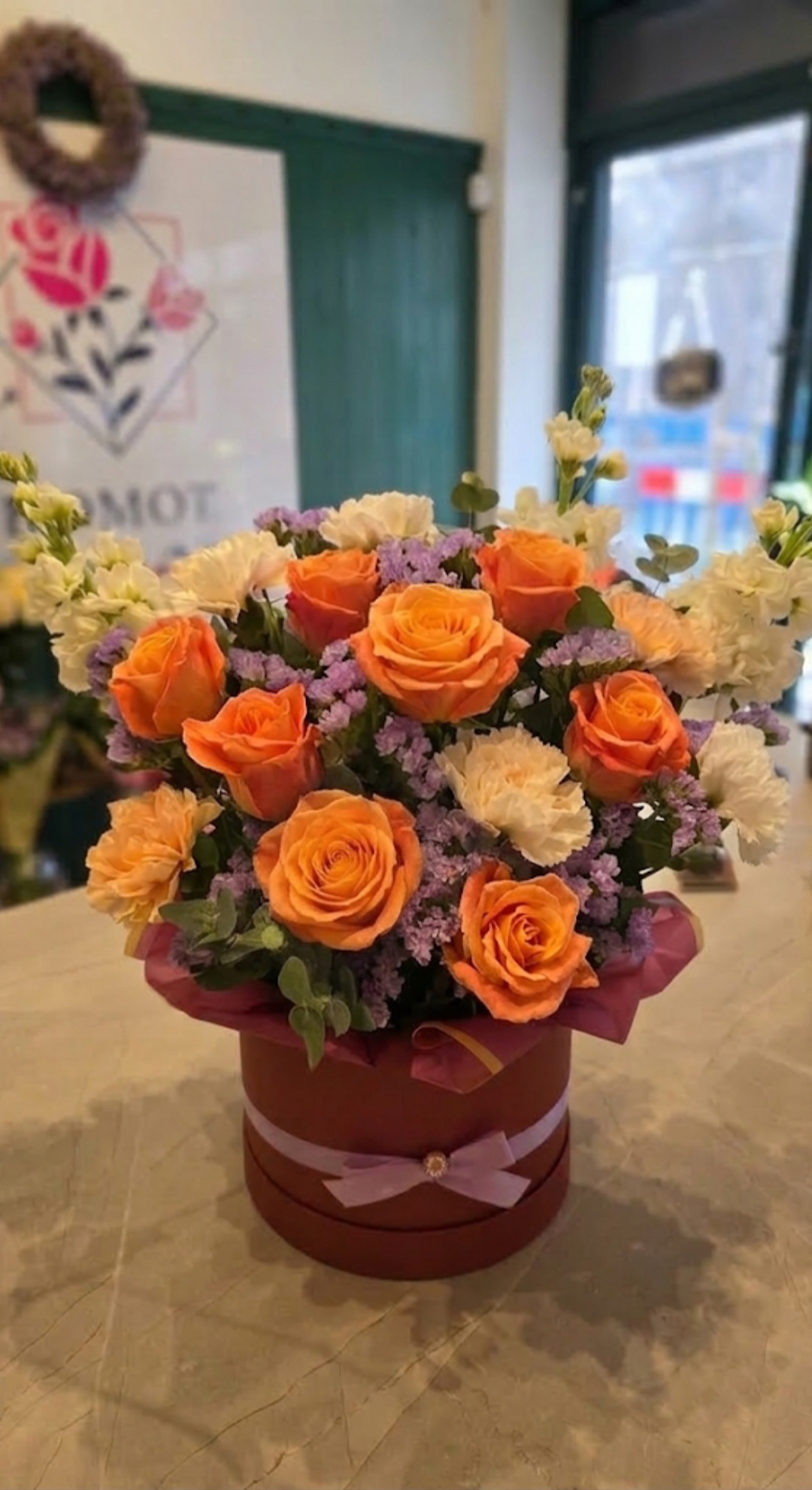 Our flower boxes are not only stylish but also practical. The flowers are arranged in a special floral foam, meaning they stay hydrated and fresh longer without the need for a vase. It’s a perfect “ready-to-display” gift for any home or office.