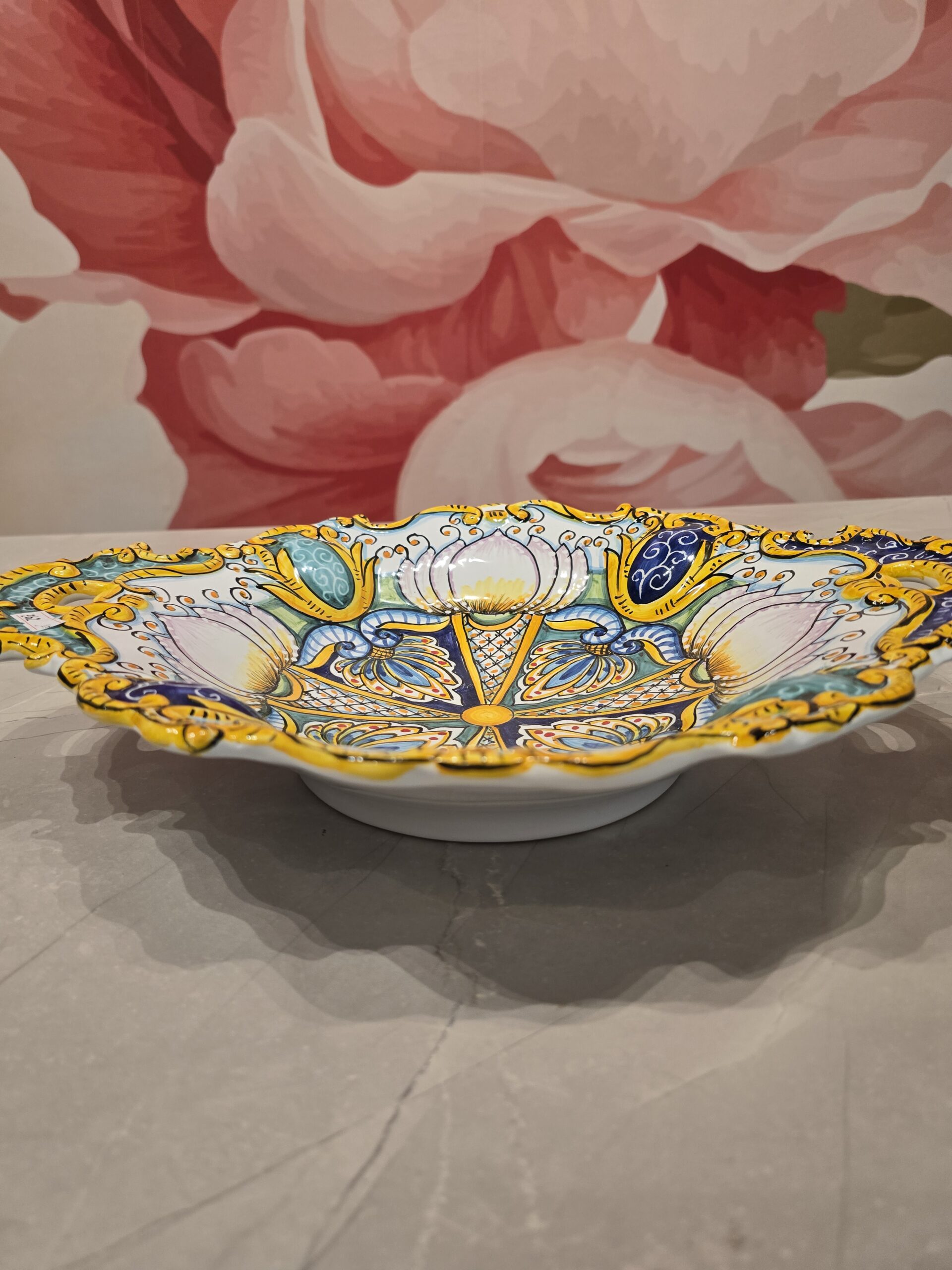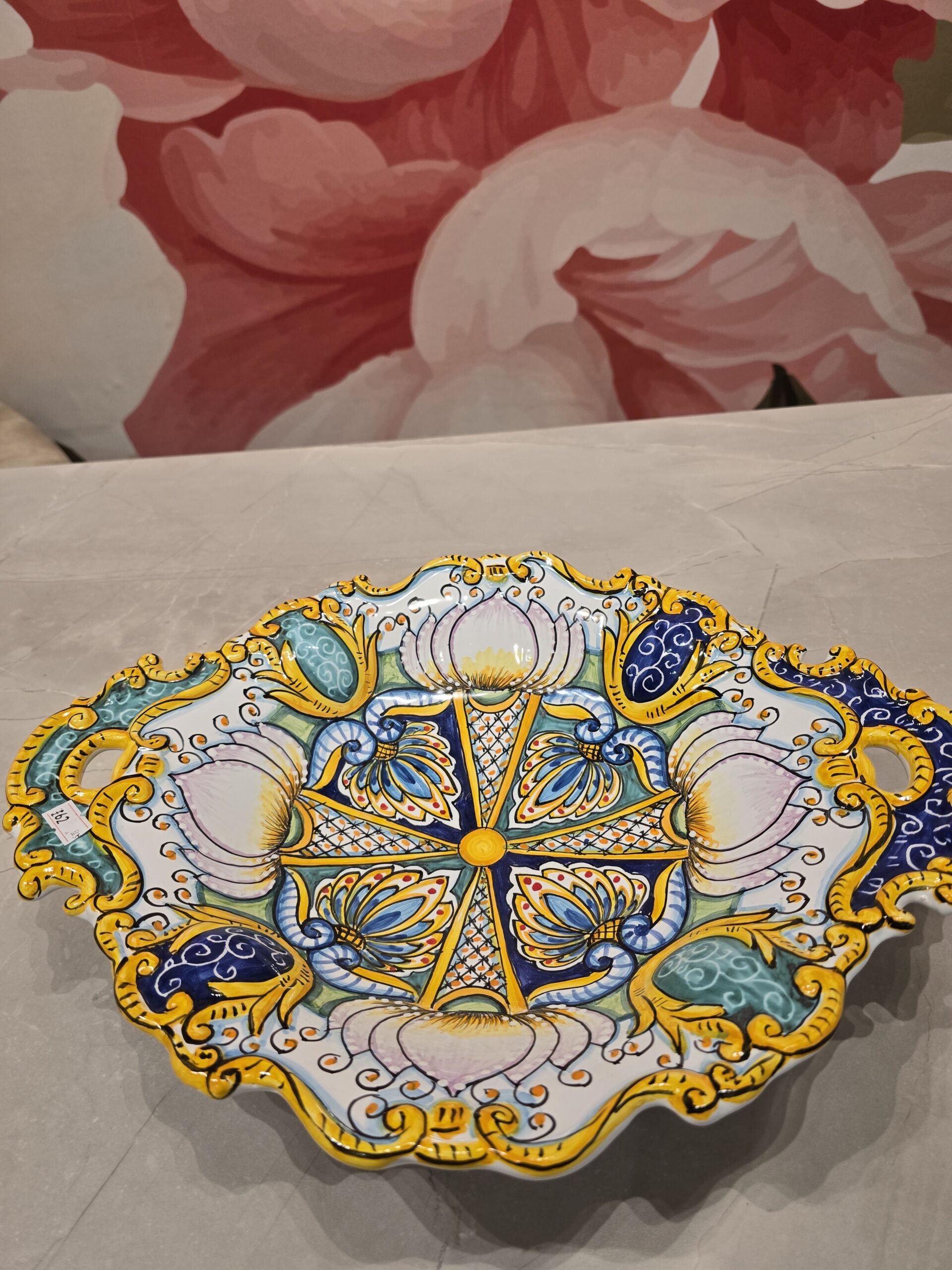 This large handmade decorative plate is a beautiful example of traditional Italian craftsmanship. Carefully created by skilled artisans, it combines timeless design with refined details, making it both a functional and decorative piece.